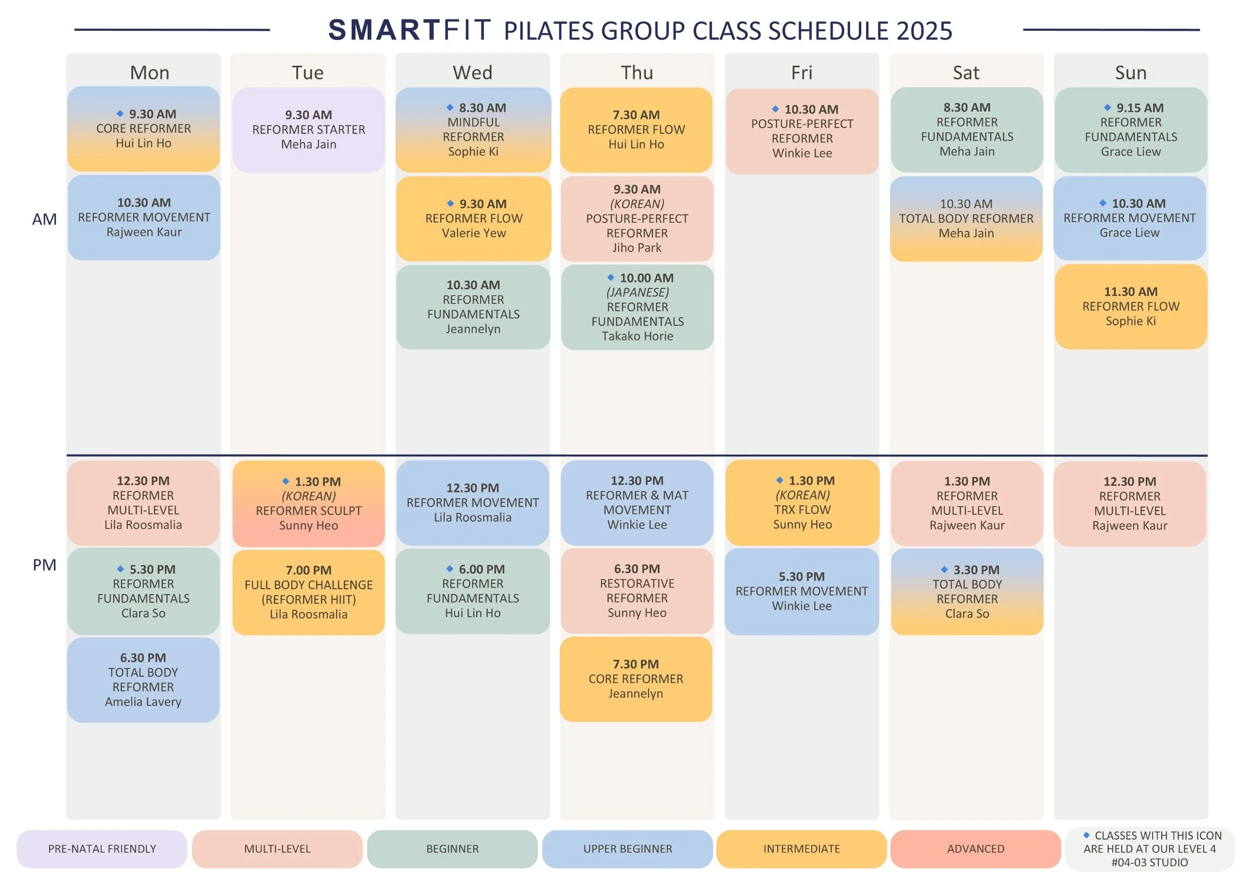 Level: 2/3 (moderate pace) Suitable for clients who have taken at least 20 lessons on the Reformer. Not for beginners.